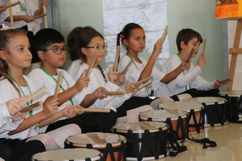 Öğrencilerin eğitimlerde edindiği bilgiler sonucu kendi hayal dünyalarında kurdukları kooperatiflerle ilgili Yalova Valisi Dr. Hülya Kaya'ya bilgi vermesinin ardından Yalova İlkokulu öğrencileri tarafından ritim ve perküsyon gösterisi yapıldı.