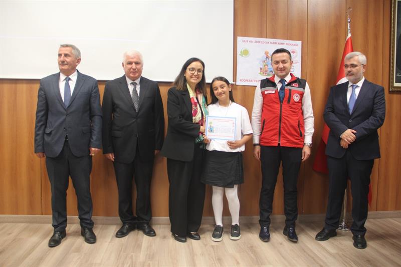 Saygı Duruşu ve İstiklal Marşının ardından öğrencilerin dört hafta boyunca yaptıkları aktivitelerle ilgili hazırlanan sinevizyon gösterisi salonda bulunanlara izletildi. Daha sonra kürsüye gelerek beş hafta süren kampla ilgili bilgiler veren Mühendis Vedat Yazıcı “Bakanlığımızca yürütülen “Lider Çocuk Tarım Kampı Programı", geleceğimizin teminatı çocuklarımızda doğa bilinci ve çevre farkındalığı oluşturmak amacıyla belli aralıklarla büyük bir heyecanla uygulanmaktadır.