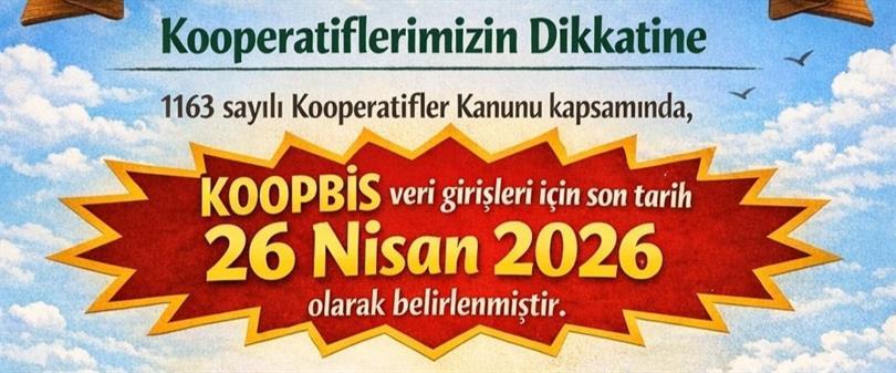 1163 sayılı Kooperatifler Kanunu kapsamında, KOOPBİS veri girişleri için son tarih 26 Nisan 2026 olarak belirlenmiştir.